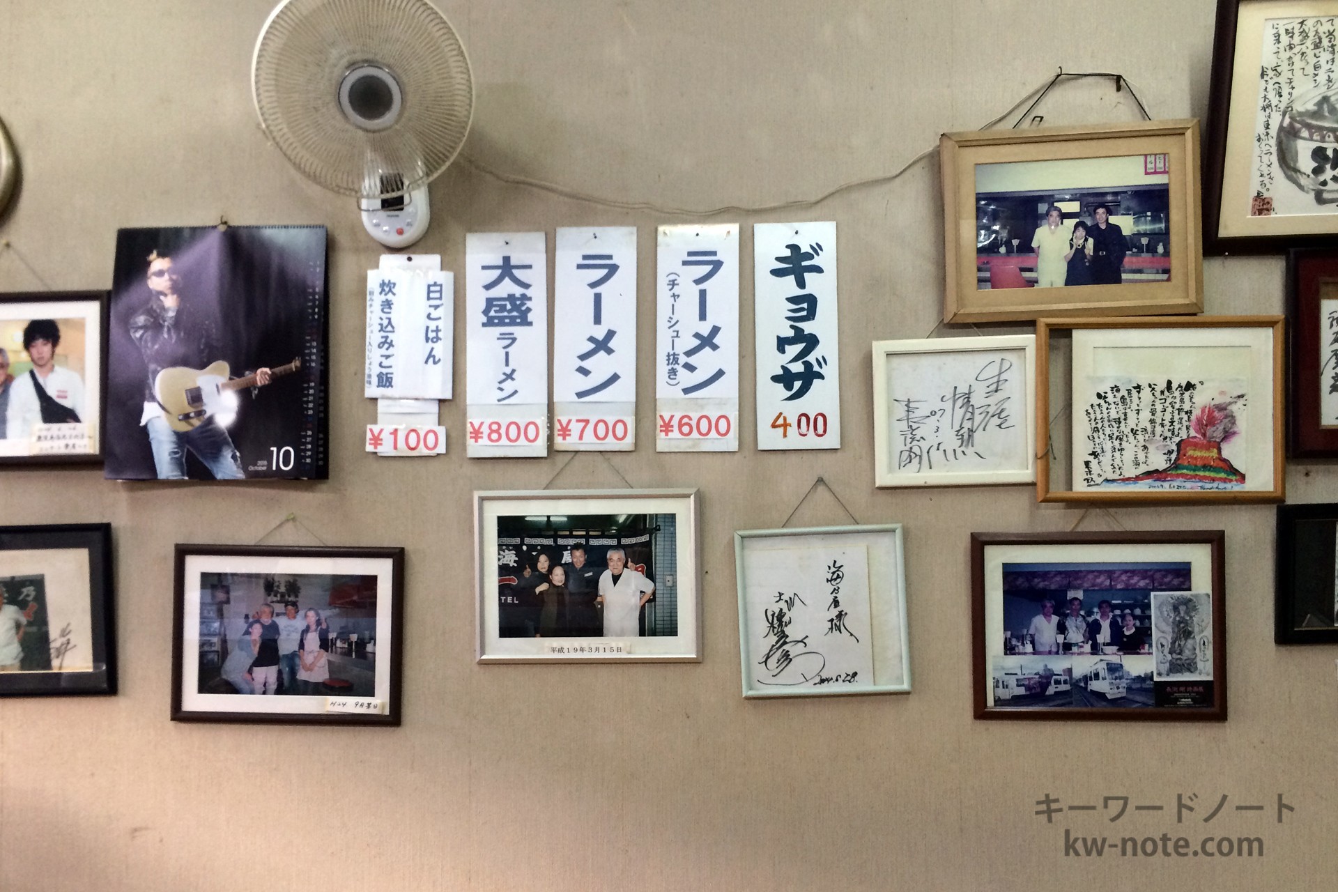 アーティストの長渕剛が高校時代に通っていた店としても知られており、店内の壁には長渕剛との写真やサイン色紙など、ゆかりの品々が飾られていて、少し腰の曲がったおじいさんと若い女性の2人で切り盛りしていて、店内は昔ながらの雰囲気の漂う老舗店でした。