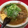 テーブルには無料でトッピングできる生卵が置かれており、茶色系の特徴である濃口やたまり醤油で仕上げられた濃厚豚骨スープと甘辛く煮込んた肉とメンマにマッチし、すき焼きを思わせる風味でご飯も欲しくなってきました。
