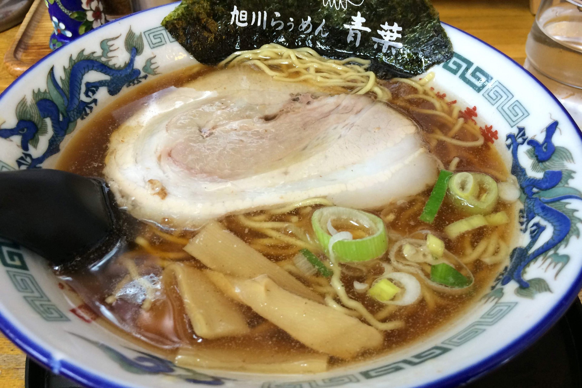 写真は旭川ラーメンの老舗「旭川らぅめん青葉 本店」で食した「正油らぅめん」です。
